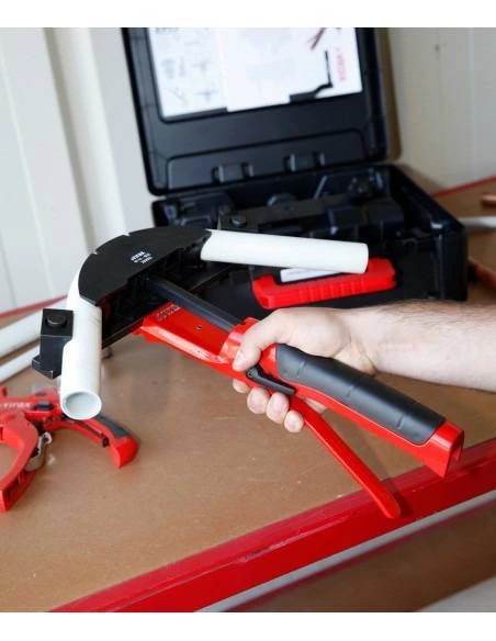 • Utilisation polyvalente : à 1 main pour un cintrage rapide sur la plupart des diamètres, à 2 mains pour plus de puissance sur les matériaux et les diamètres les plus contraignants. Levier de déverrouillage pour un retrait rapide de la forme de cintrage.