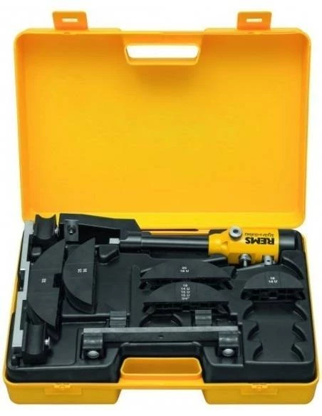 La cintreuse 153523R de 2.4 kg est livrée dans sa valise avec le set de formes de cintrage Ø 16 – 18 – 20 – 25/26 – 32 mm.