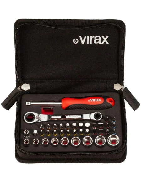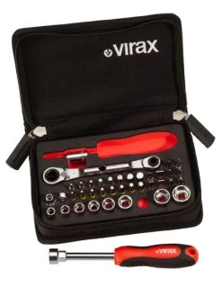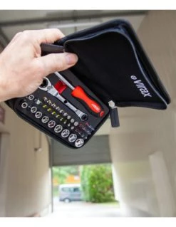 • 26 embouts à code couleur pour toutes les empreintes de vis. Phillips® : PH1-2-3 ; Posidriv® : PZ1-2-3 ; Fente : 3,5-4,5-6,5-8 mm ; 6 pans 2-2,5-3-4-5-6-7-8 mm ; Torx : TX9-10-15-20-25-27-30-40.