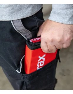 • Coffret bi-matière : tissu 1200 x 1200 deniers alliant souplesse et résistance. Vinyle imperméable et facilement nettoyable : idéal pour les chantiers humides et salissants. Double zip pour une ouverture/fermeture facile. Coffret compact pour un rangement facile.