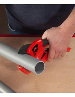 Le coupe tube plombier est également capable de réaliser les chanfreins sur les tubes PVC avant le collage. Il est un outil deux-en-un très pratique qui assure un guidage parfait lors de la coupe. De plus, le coupe tubes possède une poignée Soft Touch antidérapante pour une prise en main parfaite. Le changement de lames s’effectue rapidement et sans outil manuel.