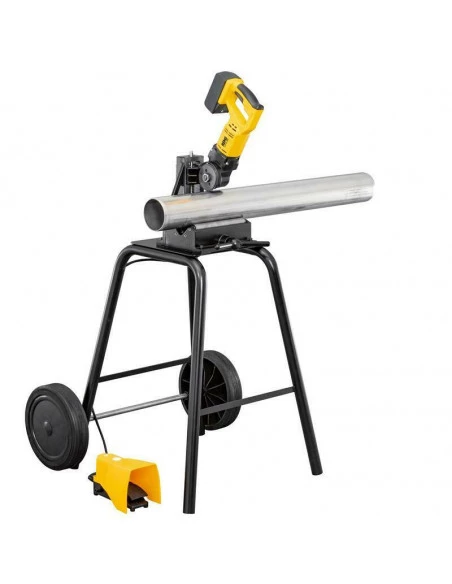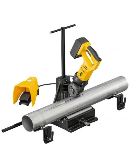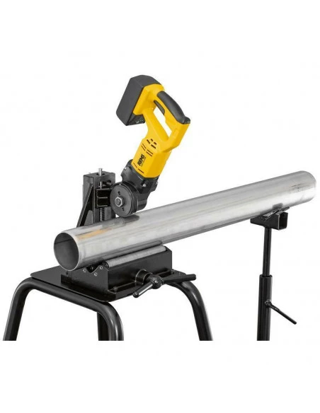 • Machine à couper les tubes sur accu, compacte, mobile, pour coupe rapide à angle droit, sans bavures extérieures. Maniable et légère, machine d’entraînement avec accu 17,6 kg seulement. Construc tion en fonte, stable, anti-torsion pour coupe à angle droit.