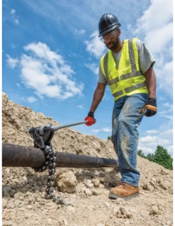 • La poignée à cliquet, parallèle au tuyau, permet de travailler dans les tranchées les plus étroites.