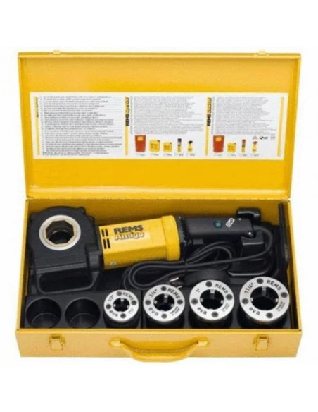 Une filière électrique Rems Amigo Set R 1/2-3/4-1-1 1/4″ pour le filetage des tubes acier
