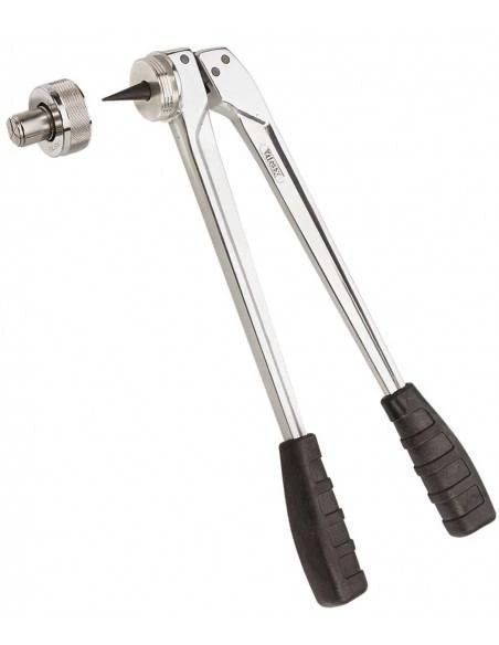 La pince à emboîture 252641 permet d’emboîter et assembler les tubes en cuivre de 12, 14, 16, 18, 22 mm de diamètre grâce à son mécanisme à la conception unique. Ainsi, elle offre une utilisation dans toutes les positions et réalise l’extraction de l’emboîture après chaque manipulation. La pince dispose également de plusieurs poignées ergonomiques en polypropylène qui sont inattaquables par les graisses et solvants. L’outillage de plomberie en alliage léger possède des dimensions de (LxlxH) : 450x230x63 mm et un poids réduit de 2.12 Kg pour un rangement optimal. La pince est aussi très résistante grâce à ses bras profilés. Offrant un changement d’outil simple et rapide, la pince est livrée dans un coffret en plastique avec ses têtes de 12, 14, 16, 18 et 22 mm de diamètre.